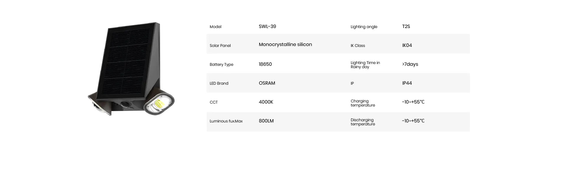 Double the light, double the security. The SWL-39 features a unique twin-head design that allows you to point powerful beams in two different directions from a single solar source. Perfect for lighting up corner plots, large backyards, or shared driveways. Using an Active Control System (ALS), it intelligently manages battery power to ensure the light stays on until dawn, even when the UK sun hasn't made an appearance all day. Rugged, versatile, and completely waterproof."